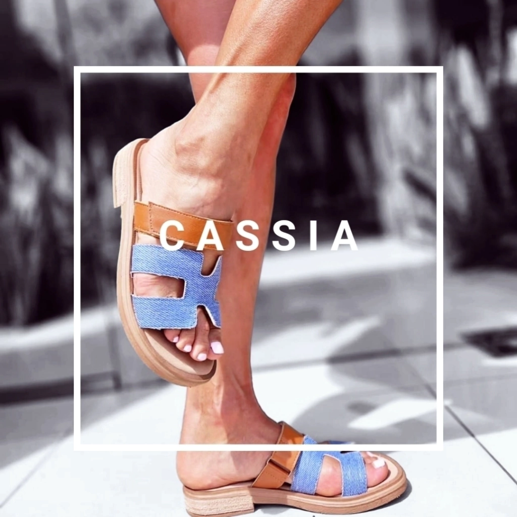 Sandalia horma normal, base goma, jeans combinado con cuero vegano